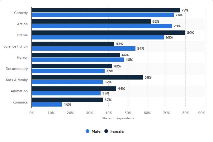 Favorite movie/TV genres in the U.S. by gender 2016
